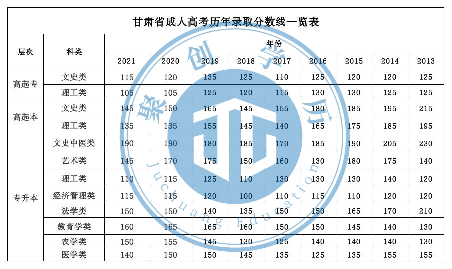甘肃省成人高考历年录取分数线-尊龙凯时人生就是搏